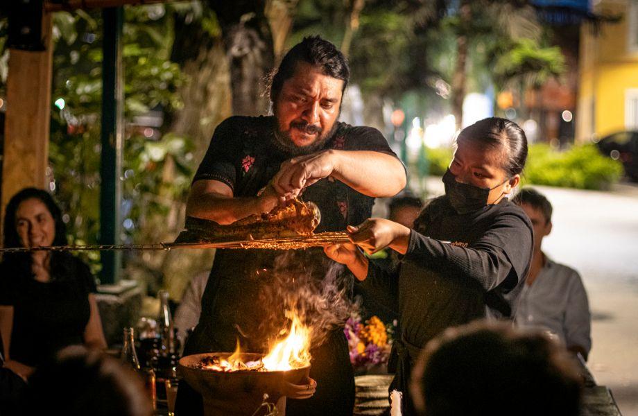 Named after his daughter Emilia, chef Lucho Martinez first opened this restaurant in Colonia Cuauhtémoc in 2018 before relocating it to Roma Norte and rebranding as Em. Martinez is originally from Veracruz and worked in restaurants in Cancun before entering high-end gastronomy kitchens in Mexico City such as Máximo Bistrot and Quintonil. With Em, he has upped the ante with avant-garde seasonal menus—the omakase features eight or nine courses, but a regular la carte menu is also available—that bring together unexpected flavour pairings drawn from both Mexican and Japanese culinary heritage. Think huitlacoche cheese tarts sharing menu space with dishes that feature dashi made with cactus or escamole croquettes with serrano chiles. With minimal interior decor (the restaurant is located in the former Máximo Bistrot space) the dining room acts as a blank canvas for the visceral culinary drama that unfolds on the plate.
