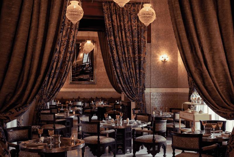 The ornate design of the dining room relfects Moroccan tradition and creates symbiosis with the service style and cuisine